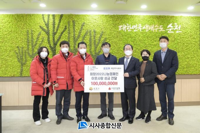 [½Ã»çÁ¾ÇսŹ® = Àå¹Î±Ô ±âÀÚ] DSRÁ¦° ÁÖ½Äȸ»ç(´ëÇ¥ÀÌ»ç È«ÇÏÁ¾)´Â 17ÀÏ ¾î·Á¿î ÀÌ¿ôÀÇ µû¶æÇÑ ¿¬¸»À» À§ÇØ Àú¼ÒµæÃþ Áö¿ø¿¡ ½á´Þ¶ó¸ç ¼øÃµ½Ã¿¡ ÀÌ¿ôµ½±â ¼º±Ý 1¾ï¿øÀ» ÄèôÇß´Ù.