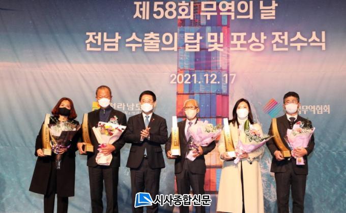 Àü¼ö½ÄÀº ±è¿µ·Ï Àü³²µµÁö»ç, ÀåÃá»ó ±¤ÁÖÀü³²±â¾÷ÇùÀÇȸÀå, Àå´ë±³ ±¤ÁÖÀü³²Áö¹æÁß¼Òº¥Ã³±â¾÷ûÀå, À̱ÇÀç Çѱ¹¹«¿ªÇùȸ ±¤ÁÖÀü³²Áö¿ªº»ºÎÀå µîÀÌ Âü¼®ÇÑ °¡¿îµ¥ ¾î·Á¿î °æÁ¦ ¿©°Ç¿¡¼ ¼öÃâžÀ» ¼ö»óÇÑ ±â¾÷°ú À¯°øÀÚ¸¦ °Ý·ÁÇÏ´Â ¶æ±íÀº Çà»ç·Î Ä¡·¯Á³´Ù.