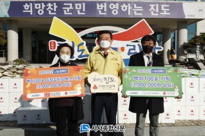 Áö³ 22ÀÏ(¼ö) ÁøµµÈ«ÁÖ ´ë´ë·Î¿µ³óÁ¶ÇÕ¹ýÀÎ(´ëÇ¥ ±è¾Ö¶õ)¿¡¼ Áö¿ª ³» ¾î·Á¿î ÀÌ¿ôÀ» À§ÇØ ¹é¹Ì 10kg 100°¡¸¶¿Í ±èÀå ±èÄ¡ 50¹Ú½º ±âŹÇß´Ù.