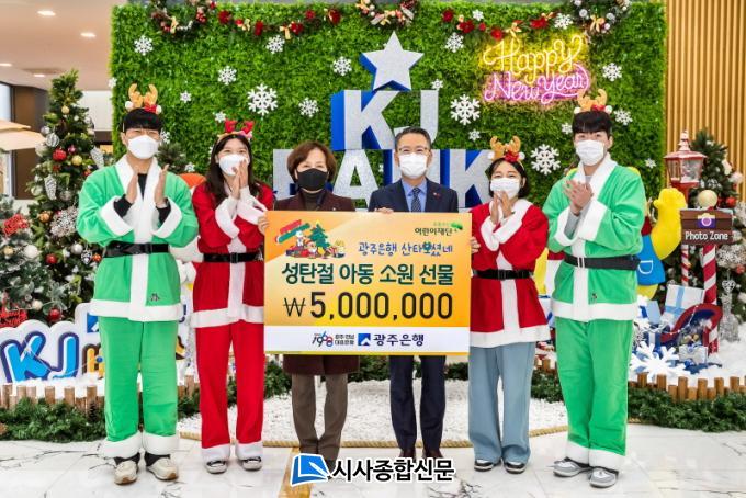 ¼ÛÁ¾¿í ÀºÇàÀå°ú ±¤ÁÖÀºÇà Áö¿ª»ç¶ûºÀ»ç´Ü Á÷¿øµéÀº Á÷Á¢ »êŸ·Î ºÐÀåÇØ ÆÐµùÁ¡ÆÛ¿Í Ã¥°¡¹æ, Àå³°¨ µî ¾ÆÀ̵éÀÇ ¼Ò¿ø ¸®½ºÆ®¿¡ ÀÖ´Â ¼±¹°°ú ÄÉÀÌÅ©¸¦ Àü´ÞÇßÀ¸¸ç, ¼±¹° Àü´Þ½Ä ÈÄ¿¡´Â Å©¸®½º¸¶½ºÆ®¸®¸¦ ¹è°æÀ¸·Î »êŸ¿Í ÇÔ²² Áï¼®»çÁøÀ» ÂïÀ¸¸ç Áñ°Å¿î ½Ã°£À» °¡Á³´Ù.