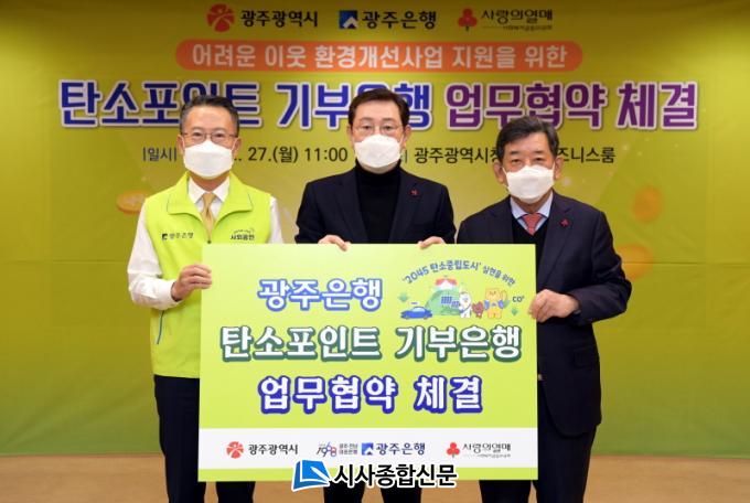 Çù¾à½Ä¿¡¼ ¼ÛÁ¾¿í ±¤ÁÖÀºÇàÀåÀº ¡°ÀÛ³â 12¿ù, ¡®Å»¼®Åº¡¤±×¸°´ºµô¡¯ Çù¾à¿¡ À̾î À̹ø ¡®Åº¼ÒÆ÷ÀÎÆ® ±âºÎÀºÇ࡯ Çù¾à½Ä±îÁö ±¤ÁÖ±¤¿ª½ÃÀÇ 2045³â ź¼ÒÁ߸³µµ½Ã ½ÇÇö¿¡ µ¿ÂüÇÒ ¼ö ÀÖ¾î ¸Å¿ì ¶æ±í´Ù¸ç, Áö¿ª¹Î°ú µ¿ÇàÇϰí, Áö¿ª°ú »ó»ýÇϱâ À§ÇÑ ESG °æ¿µ¿¡ ¾ÕÀå¼ ±¤ÁÖ¡¤Àü³² ´ëÇ¥ÀºÇàÀÇ ¼ÒÀÓ¿¡ ÃÖ¼±À» ´ÙÇϰڴ١±°í ¸»Çß´Ù.