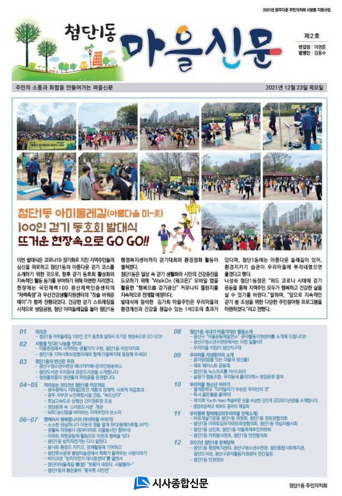ÇÑÆí, ÷´Ü1µ¿ ÁÖ¹ÎÀÚġȸ´Â Áö³ 2020³â ±¤ÁÖ±¤¿ª½Ã°¡ ÁÖ°üÇÏ´Â ±¤ÁÖ´Ù¿î ÁÖ¹ÎÀÚġȸ ½Ã¹üµ¿ Áö¿ø»ç¾÷¿¡ ¼±Á¤µÇ¾î, ¸¶À»½Å¹® ¹ßÇà»Ó¸¸ ¾Æ´Ï¶ó ÁÖ¹ÎÃÑȸ ¹× º·è½ÃÀå °³ÃÖ, ¾ÆÆÄÆ® ÃëÇâ°øµ¿Ã¼ ÇÁ·Î±×·¥ Áö¿ø µî ´Ù¾çÇÑ ÁÖ¹ÎÀÚÄ¡ Ȱ¼ºÈ »ç¾÷À» ÆîÄ¡°í ÀÖ´Ù.