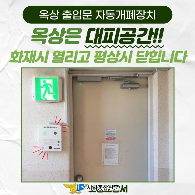 ¿Á»ó ÃâÀÔ ºñ»ó¹® ÀÚµ¿°³Æó ÀåÄ¡´Â Æò»ó½Ã ´ÝÈù »óÅ·ΠÀ¯ÁöµÇÁö¸¸ ÈÀç°¡ ¹ß»ýÇÏ¸é °¨Áö±â µî ¼Ò¹æ½Ã¼³°ú ¿¬µ¿µÅ ÀÚµ¿À¸·Î ¿Á»ó ÃâÀÔ¹®À» °³¹æ½ÃÄÑ ½Å¼ÓÇÑ ´ëÇǰ¡ °¡´ÉÇÏ´Ù.