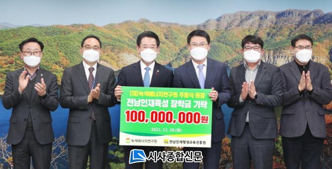 (Àç)³ì»ö¿¡³ÊÁö¿¬±¸¿øÀº ¿¡³ÊÁö½Å»ê¾÷ ¿øÃµ ±â¼ú°ú ½Ç¿ëÈ ±â¼úÀ» ¿¬±¸․°³¹ßÇÏ´Â Àü³²µµ Ã⿬±â°üÀÌ´Ù. µµ³» ¿¡³ÊÁö °ü·Ã ÀÏÀÚ¸® âÃâ¿¡µµ ±â¿©Çϰí ÀÖ´Ù. 2016³â Àü³²µµ¿Í °æ±âµµ°¡ ¸ÎÀº Áö¿ª»ó»ýÇù¾àÀ¸·Î °Ç¸³ÇÑ ¡®Áö¿ª»ó»ý ž籤¹ßÀü¼Ò¡¯ ¼öÀͱÝÀ¸·Î ÀåÇбÝÀ» ¸¶·ÃÇß´Ù. 2018³âºÎÅÍ ÃÑ 2¾ï 5õ500¸¸ ¿øÀÇ ÀåÇбÝÀ» ÁøÈï¿ø¿¡ ±âŹÇß´Ù.