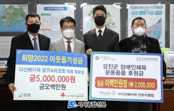 À̳¯ À庸¼º ´ëÇ¥´Â ÀÌ¿ôµ½±â ¼º±Ý 500¸¸ ¿ø°ú Çѱ¹È¿µµÈ¸°ÁøÁö¿ªÈ¸¿¡ 100¸¸ ¿ø, µµ¾Ï¸éÁö¿ª»çȸº¸ÀåÇùÀÇü¿¡ 100¸¸ ¿øÀ» ±âŹÇßÀ¸¸ç, °Áø±º Àå¾ÖÀÎüÀ°È¸¿¡ ¿îµ¿¿ëǰºñ 200¸¸ ¿øÀ» Àü´ÞÇß´Ù.