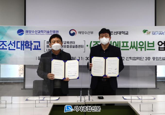 Á¶¼±´ëÇб³ »êÇÐÇù·Â´Ü 3Ãþ ÁßȸÀǽǿ¡¼ ÁøÇàµÈ Çù¾à½ÄÀº ÇØ¾ç¼ö»êºÎ¿Í Àü¶ó³²µµ, ¿Ïµµ±º Áö¿øÀ¸·Î À¯Ä¡ÇÑ ÇØ¾çÇコÄɾîÀ¯È¿¼º½ÇÁõ¼¾ÅÍÀÇ ¡®ÇØÁ¶·ù ±â¹Ý ¹ÙÀÌ¿À ÇコÄɾî À¯È¿¼º ¼ÒÀç ½ÇÁõÁö¿ø »ç¾÷(±èÃἺ ÃѰý±³¼ö)¡¯¿¡ µû¸¥ °ÍÀ¸·Î Áö¿ª ¾÷üÀÎ ¢ßÁö¿¡ÇÁ¾¾À§ºê(ÀÌ¿µÀç ´ëÇ¥)¿ÍÀÇ »óÈ£ Çù·ÂÀ» À§ÇØ ¸¶·ÃµÆ´Ù.