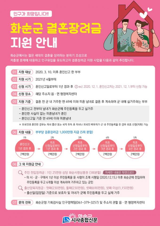 Á¶°ÇÀ» ÃæÁ·ÇÏ´Â ´ë»óÀڴ ȥÀνŰí ÈÄ 1³âÀÌ Áö³ª¸é °áÈ¥Àå·Á±ÝÀ» ½ÅûÇÒ ¼ö ÀÖ´Ù. ½ÅûÀº Áö¿ø »çÀ¯ ¹ß»ýÀϷκÎÅÍ 10°³¿ù À̳»¿¡ ÇÏ¿©¾ß ÇϹǷÎ, 2020³â 3¿ù¿¡ È¥ÀÎ ½Å°íÇÑ ´ë»ó ºÎºÎ´Â 2022³â 1¿ù¸»±îÁö °üÇÒ ÁÖ¼ÒÁö À¾¡¤¸é ÇàÁ¤º¹Áö¼¾ÅÍ¿¡ ¹æ¹®ÇÏ¿© ½ÅûÇÏ¿©¾ß ÇÑ´Ù.