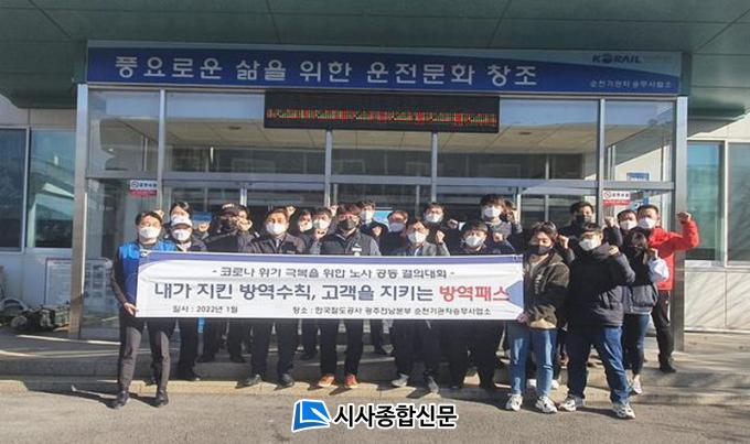 [½Ã»çÁ¾ÇսŹ® = ¿À½ÂÅà ±âÀÚ] Çѱ¹Ã¶µµ ±¤ÁÖÀü³²º»ºÎ´Â 14ÀÏ ¿ÀÀü ¼øÃµ±â°üÂ÷½Â¹«»ç¾÷¼Ò¿¡¼ Äڷγª19 È®»ê ¹æÁö¸¦ À§ÇØ ³ë»ç °øµ¿ °áÀÇ´ëȸ¸¦ °³ÃÖÇÔ.