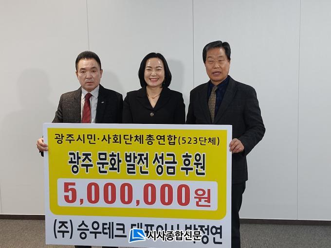 | ½ÂÈÄÅ×Å©(ÁÖ) ¹ÚÁ¤¿¬ ´ëÇ¥ ¡°±¤Áֽùλçȸ´Üü¡±¿¡ ±¤ÁÖ¹®È¹ßÀü¼º±Ý 500¸¸ ¿ø Äèô |