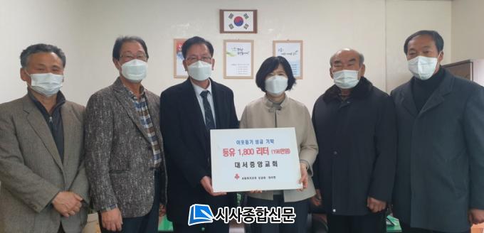 °íÈﱺ(±º¼ö ¼Û±Í±Ù) ´ë¼Áß¾Ó±³È¸(´ãÀÓ¸ñ»ç Á¶±ÍÇö)´Â 18ÀÏ ´ë¼¸é»ç¹«¼Ò¸¦ ¹æ¹®ÇØ µîÀ¯ 1800¸®ÅÍ(198¸¸¿ø »ó´ç)¸¦ ±âŹÇϸç Áö¿ª»çȸ ³ª´®¿¡ ¾ÕÀå¼°í ÀÖ´Ù.