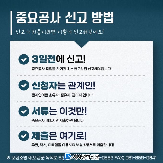 | º¸¼º¼Ò¹æ¼, ¿ëÁ¢ µî Áß¿ä°ø»ç »çÀü ½Å°íÁ¦ ¿î¿µ