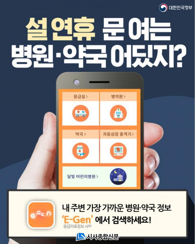 ¡®ÀÀ±ÞÀÇ·áÁ¤º¸ Á¦°ø¾Û E-GEN¡¯À» Ȱ¿ëÇÏ¸é »ç¿ëÀÚ À§Ä¡¸¦ ±â¹ÝÀ¸·Î ÁÖº¯¿¡ ¹® ¿¬ º´‧ÀÇ¿ø°ú ¾à±¹ ¿î¿µ½Ã°£ Á¶È¸°¡ °¡´ÉÇϸç, ¼±º°Áø·á¼Ò À§Ä¡¸¦ Áöµµ·Î º¼ ¼öµµ ÀÖ´Ù.