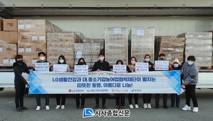 ¼³ ¸íÀý ¸Â¾Æ ÁøÇàµÈ À̹ø ¼ºÇ° ±âŹÀº ÀåÈﱺ¹ÎÀÇ Äڷγª19 ±Øº¹À» ±â¿øÇÏ´Â ¶æµµ ÇÔ²² ´ã¾Ò´Ù. ±âʹ°Ç°Àº LG»ýȰ°Ç°°ú ´ë¡¤Áß¼Ò±â¾÷¡¤³ó¾î¾÷Çù·ÂÀç´Ü¿¡¼ Áö¿øÇÑ ÈÀåǰ, KF94¸¶½ºÅ©, ¼¤ÇÁ, ÁöÆÛ¶ô, ¹°Æ¼½´, ¼¶À¯À¯¿¬Á¦, ¹Ùµð¿ö½Ã µîÀÌ´Ù.