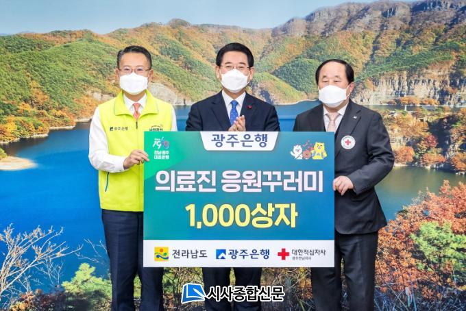 ÀÌ¿¡ ¾Õ¼ ±¤ÁÖ±¤¿ª½Ã¿¡µµ Áö¿ª ÀÇ·áÁøÀ» À§ÇÑ ÀÀ¿ø²Ù·¯¹Ì 1,000»óÀÚ¸¦ Àü´ÞÇÑ ±¤ÁÖÀºÇàÀº ¼ÛÁ¾¿í ÀºÇàÀå°ú ÀÓÁ÷¿øµéÀÌ °Ç°½Äǰ°ú °£½Ä, Áï¼®½Äǰ µî ÃÑ 16Á¾·ùÀÇ ÀÀ¿ø¹°Ç°À¸·Î ±¸¼ºÇÏ¿© Á÷Á¢ ¡®ÀÀ¿ø²Ù·¯¹Ì¡¯ Á¦ÀÛ¿¡ ³ª¼´Â µî Äڷγª19 ¹æ¿ªÀÇ ÃÖÀü¼±¿¡¼ Èû¾²°í ÀÖ´Â ÀÇ·áÁø¿¡°Ô µû¶æÇÑ ³ª´®È°µ¿À» À̾°í ÀÖ´Ù.