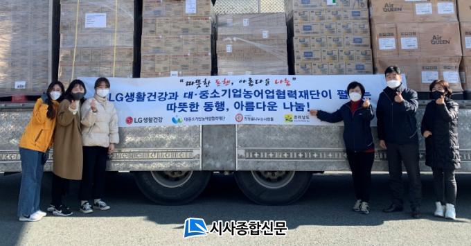 LG »ýȰ°Ç°°ú ´ëÁß¼Ò±â¾÷ ³ó¾î¾÷Çù·ÂÀç´ÜÀÌ (»ç)Èñ¸ÁÀ» ³ª´©´Â »ç¶÷µéÀ» ÅëÇØ °ü³» ¾î·Á¿î ÀÌ¿ô¿¡°Ô Àü´ÞÇØ ´Þ¶ó¸ç »ýÇÊǰ°ú ¸¶½ºÅ© µîÀ» Àü´ÞÇß´Ù. ƯÈ÷ LG »ýȰ°Ç° µîÀº Áö³ÇØ ¿©¸§ ÁøµµÀ¾ ÁýÁß È£¿ì ÇÇÇØ ½Ã ±¸È£ ¹°Ç° µîÀ» Áøµµ±º¿¡ ±âŹÇϱ⵵ Çß´Ù.