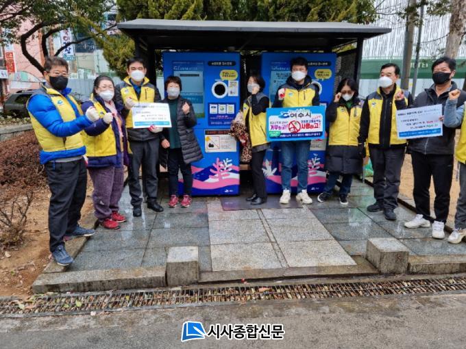 ÆÀ¿ø 12¸íÀº Áö³ 23ÀÏ ½Ã¹ÎµéÀÌ ÀÚ¿ø¼øÈ¯½Ã¼³À» ÄèÀûÇÏ°Ô ÀÌ¿ëÇÒ ¼ö ÀÖµµ·Ï °ÅºÏ¼±°ø¿ø¿¡ ¼³Ä¡µÈ ¡®ÀΰøÁö´É ĵ‧ÆäÆ®º´ ÀÚµ¿¼ö°Å±â¡¯ÀÇ ¹¬Àº ¶§¿Í ¸ÕÁö¸¦ ¸»²ûÈ÷ ´Û¾Æ³»°í, ´õ·¯¿öÁø ¹Ù´ÚÀº ¹°Ã»¼Ò¸¦ ½Ç½ÃÇß´Ù.