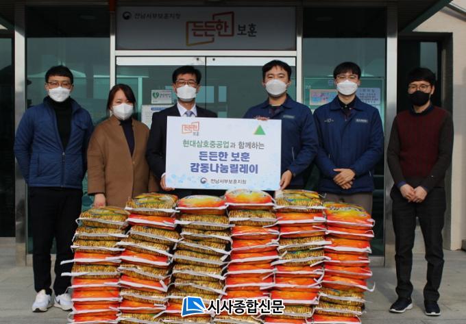 [½Ã»çÁ¾ÇսŹ® = ¿À½ÂÅà ±âÀÚ] Çö´ë»ïÈ£Áß°ø¾÷(´ëÇ¥ÀÌ»ç: ±èÇü°ü)Àº Áö³ 21ÀÏ ¼³ ¸íÀýÀ» ¸ÂÀÌÇÏ¿© Àü³²¼ºÎº¸ÈÆÁöû(ÁöûÀå: À¯Çü¼±)¿¡ ±¹°¡À¯°øÀںеéÀ» À§ÇØ »ç¿ëÇØ ´Þ¶ó¸ç ½Ò600kgÀ» Àü´ÞÇÏ¿´´Ù.