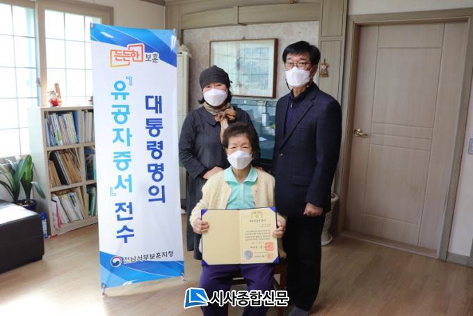 [½Ã»çÁ¾ÇսŹ® = ¿À½ÂÅà ±âÀÚ] Àü³²¼ºÎº¸ÈÆÁöû(ÁöûÀå À¯Çü¼±)Àº 2¿ù 8ÀÏ ¿µ¾Ï±º¿¡ °ÅÁÖÇÏ´Â ½Å±Ô µ¶¸³À¯°øÀÚ ÈļÕÀÇ ÀÚÅà 2°÷À» ¹æ¹®ÇÏ¿© ´ëÅë·É¸íÀÇ À¯°øÀÚ Áõ¼ Àü¼ö¿Í ÇÔ²² µ¶¸³À¯°øÀÚ ¸íÆÐ´Þ±â Çà»ç¸¦ ½Ç½ÃÇÏ¿´´Ù.