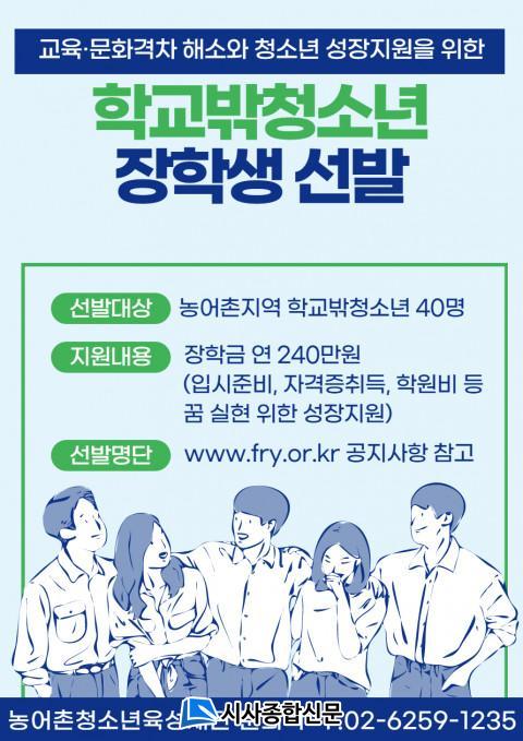 ³ó¾îÃÌû¼Ò³âÀ°¼ºÀç´ÜÀº Áö¿ª °£ ¹ß»ýÇÏ´Â ±³À°¡¤¹®È °ÝÂ÷ ÇØ¼Ò¿Í û¼Ò³â ¼ºÀå Áö¿øÀ» À§ÇØ Ã»¼Ò³â ¶Ç´Â º¸È£ÀÚ°¡ ³ó¾îÃÌÁö¿ª¿¡ 3³â ÀÌ»ó °ÅÁÖÇÑ Çб³¹Ûû¼Ò³âÀ» ´ë»óÀ¸·Î Çѱ¹Ã»¼Ò³â»ó´ãº¹Áö°³¹ß¿ø Çб³¹Ûû¼Ò³âÁö¿ø¼¾ÅÍÀÇ ÃßõÀ» ¹Þ¾Æ 2022³âµµ ÀåÇлý 40¸íÀ» ¼±¹ßÇß´Ù.