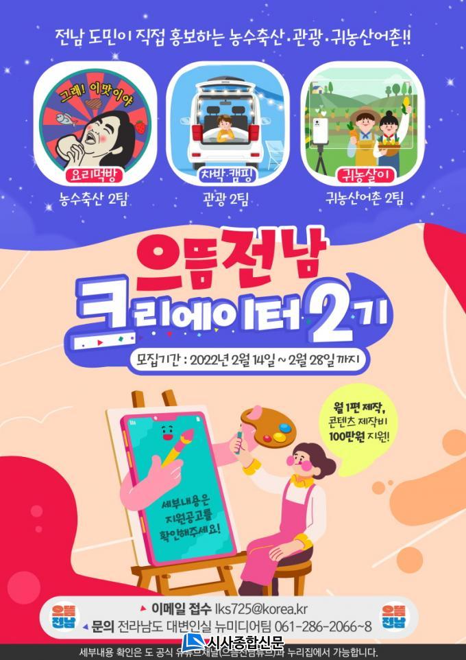 Àü³²µµ´Â À¸¶äÀü³²Å©¸®¿¡ÀÌÅÍ¿¡°Ô ¿µ»ó Á¦ÀÛºñ(¿ù 100¸¸ ¿ø/1Æí)¸¦ Áö±ÞÇϰí, ÄÜÅÙÃ÷ Á¦ÀÛ¿¡ ¾î·Á¿òÀÌ ¾øµµ·Ï Àû±Ø Áö¿øÇÒ °èȹÀÌ´Ù.