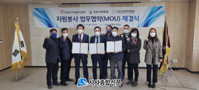 Áö³ 15ÀÏ ¼øÃµ½ÃüÀ°È¸ ȸÀǽǿ¡¼ ¿¸° Çù¾à½Ä¿¡´Â ¼¼ ±â°üÀÇ °¢ ´ëÇ¥°¡ Âü¼®ÇÑ °¡¿îµ¥, ¼º°øÀûÀÎ Çà»ç°³ÃÖ¸¦ À§ÇØ ÀÚ¿øºÀ»ç Áö¿ø, »óÈ£±³·ù ¹× Çù·ÂÀ» °ÈÇϱâ·Î Çß´Ù.
