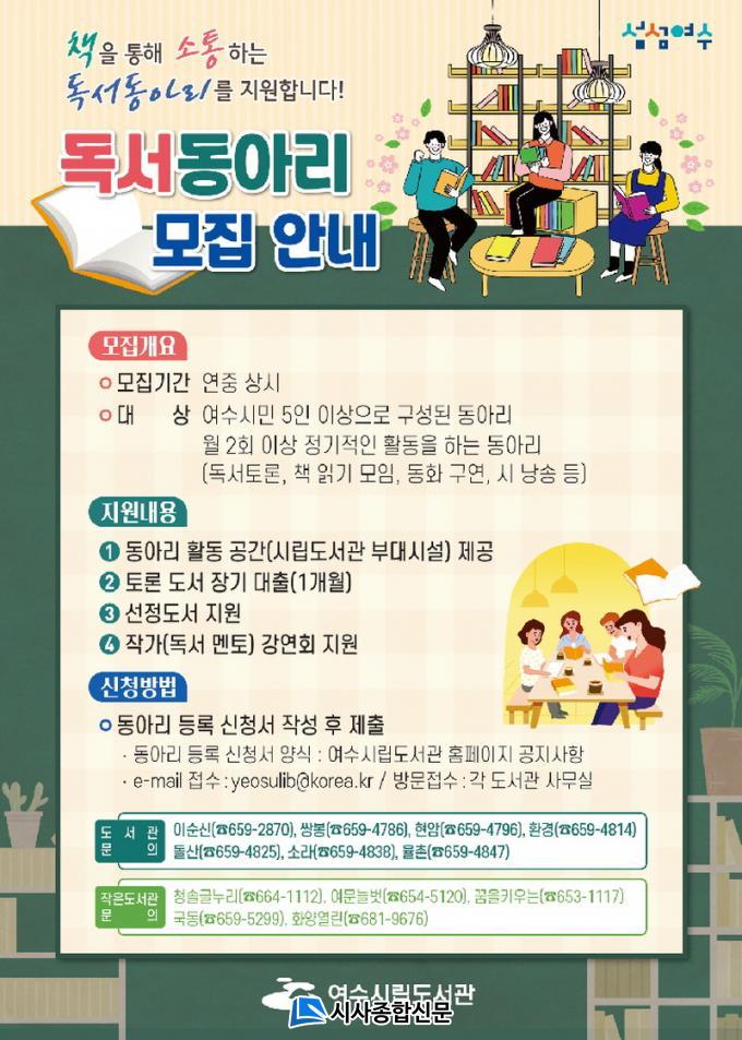 ÇÑÆí, ¿©¼ö½Ã¸³µµ¼°ü °ü°èÀÚ´Â ¡°Äڷγª19 »óȲÀ» °í·ÁÇØ ¿Â¶óÀÎÀ¸·Î ¸ðÀÓÀ» ÁøÇà ÁßÀÎ µ¿¾Æ¸®µµ Áö¿øÇϰí ÀÖÀ¸´Ï ¸¹Àº ½ÅûÀ» ¹Ù¶õ´Ù¡±¸ç ¡°µ¶¼µ¿¾Æ¸® Ȱµ¿À» ÅëÇØ ½Ã¹ÎµéÀÌ ÇÔ²² Ã¥À» ÀÐ°í ¼ÒÅëÇÏ´Â ¼Ò¼ÒÇÑ ±â»ÝÀ» ´©¸± ¼ö Àֱ⸦ ±â´ëÇÑ´Ù¡±°í ¸»Çß´Ù.