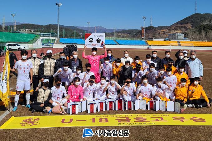 ±¤ÁÖFC U18 ±ÝÈ£°í´Â 27ÀÏ Àü³² ±¤¾ç°ø¼³¿îµ¿Àå¿¡¼ ¿¸° Á¦ 23ȸ ¹é¿î±â Àü±¹°í±³Ã౸´ëȸ °á½ÂÀü¿¡¼ °æ±âÆ÷õ½Ã¹ÎÃ౸´Ü U18À» 4-0À¸·Î ²ª°í ¿ì½ÂÄÅÀ» µé¾î¿Ã·È´Ù.
