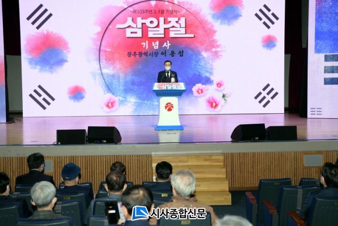 [½Ã»çÁ¾ÇսŹ® = ¿À½ÂÅà ±âÀÚ] ±¤Áֽô 1ÀÏ ¿ÀÀü ½Ãû ´ëȸÀǽǿ¡¼ Á¦103ÁÖ³â 3.1Àý ±â³ä½ÄÀ» ÁøÇàÇß´Ù.