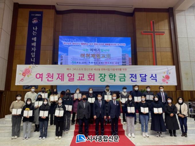 [½Ã»çÁ¾ÇսŹ® = ¿À½ÂÅà ±âÀÚ] ¿©ÃµÁ¦Àϱ³È¸(´ãÀÓ¸ñ»ç ±èµ¿½Ä)´Â Áö³ 27ÀÏ Çкñ ¸¶·Ã¿¡ ¾î·Á¿òÀ» °Þ°í ÀÖ´Â ¿©Ãµµ¿ °ü³» ´ëÇлý 6¸í¿¡°Ô ÃÑ 600¸¸¿øÀÇ ÀåÇбÝÀ» Àü´ÞÇß´Ù°í ¹àÇû´Ù.
