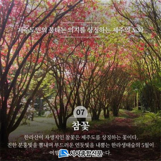 ÇѶó»êÀÌ ÀÚ»ýÁöÀÎ Âü²É³ª¹«´Â Áø´Þ·¡ ¹«¸®¿¡ ¼ÓÇÏ´Â ³ª¹«·Î ¾Æ¸§´Ù¿î ²É ¸ð¾ç°ú È·ÁÇÑ »ö»óÀ¸·Î Á¦ÁÖµµ¹ÎÀÇ »ç¶ûÀ» ¹Þ´Â ²ÉÀÌ´Ù. ô¹ÚÇÑ È¯°æ¿¡¼µµ Àß ÀÚ¶ó¸ç ±× ¸ð½ÀÀÌ Á¦ÁÖµµ¹ÎÀÇ »î°ú ´à¾Ò´Ù ÇÏ¿© Á¦ÁÖµµ¸¦ »ó¡ÇÏ´Â ²ÉÀ¸·Î ÁöÁ¤µÇ¾î ÀÖ´Ù. ÇѶó»ýŽ£ ÃÊÀÔ¿¡´Â Âü²É³ª¹« ½£±æÀÌ Á¶¼ºµÇ¾î ÀÖ´Ù. 5¿ùÀÇ µû½ºÇÑ º½ºµ ¾Æ·¡ Âü²É³ª¹«¸¦ ¹è°æÀ¸·Î Á¦ÁÖÀÇ º½À» ¸¸³£ÇØ º¸ÀÚ. È·ÁÇÏ°Ô ÁøÇÑ ºÐÈ«ºûÀ» »Ë³»¸ç ºÎµå·¯¿î ¿¬µÔºûÀ» ³»»Õ´Â ÇѶó»ýŽ£ÀÇ 5¿ùÀÌ ¿©Çà°´ÀÇ ¹ß°ÉÀ½À» ºÙÀâ´Â´Ù.