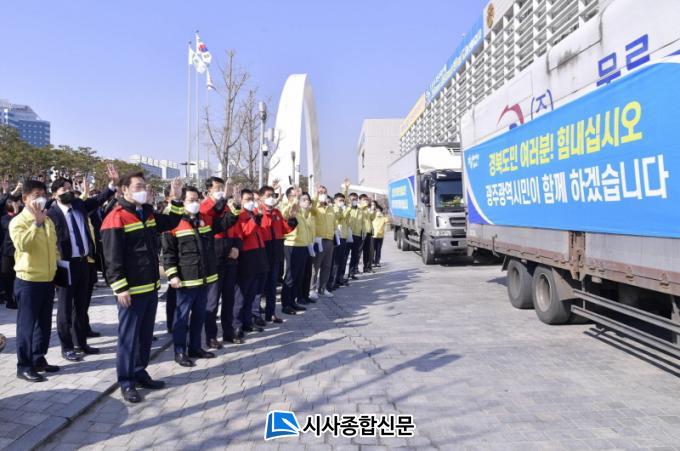 [½Ã»çÁ¾ÇսŹ® = ¿À½ÂÅà ±âÀÚ] ±¤ÁÖ±¤¿ª½Ã´Â °æ»óºÏµµ ¿ïÁø±º°ú °¿øµµ »ïô½Ã¿¡¼ ¹ß»ýÇÑ ´ë±Ô¸ð »êºÒ·Î °íÅëÀ» °Þ°í ÀÖ´Â ÁֹεéÀ» À§ÇÑ ±ä±Þ ±¸È£¹°Ç°À» Áö¿øÇÏ¸ç ±¤ÁÖÀÇ ¿ÂÁ¤À» Àü´ÞÇß´Ù.