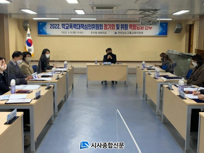 Àü¶ó³²µµ°íÈï±³À°Áö¿øÃ»(±³À°Àå ±èÁ¤Èñ)Àº 3. 8.(È) ±³À°Ã» ´ëȸÀǽǿ¡¼ 2022. °íÈï±³À°Áö¿øÃ» Çб³Æø·Â´ëÃ¥½ÉÀÇÀ§¿øÈ¸ À§¿ø 15¸íÀ» ´ë»óÀ¸·Î Çб³Æø·Â´ëÃ¥½ÉÀÇÀ§¿øÈ¸ Á¤±âȸ ¹× À§¿ø ¿ª·®°È ¿¬¼ö¸¦ ½Ç½ÃÇß´Ù.