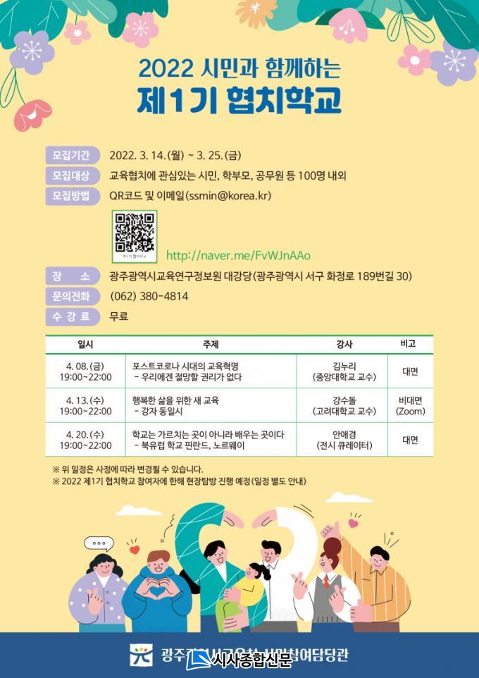 ÇÑÆí, ¡®2022 ½Ã¹Î°ú ÇÔ²²ÇÏ´Â Á¦1±â ÇùÄ¡Çб³¡¯´Â ±³À°ÇùÄ¡¿¡ °ü½ÉÀÖ´Â ½Ã¹Î, Çкθð, °ø¹«¿ø µî ´©±¸³ª ÀÚÀ¯·Ó°Ô Âü¿©ÇÒ ¼ö ÀÖ´Ù. ¼ö° ½ÅûÀº 14~25ÀÏ QRÄÚµå, ÀÎÅͳÝ(http://naver.me/FvWJnAAo) ¶Ç´Â À̸ÞÀÏ(ssmin@korea.kr)·Î Á¢¼ö °¡´ÉÇÏ¸ç ¼ö°·á´Â ¹«·áÀÌ´Ù.