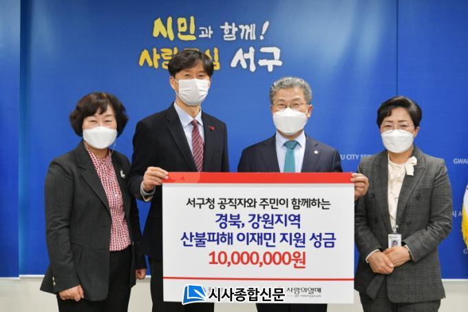 [½Ã»çÁ¾ÇսŹ® = ¿À½ÂÅà ±âÀÚ] ±¤ÁÖ ¼±¸(±¸Ã»Àå ¼´ë¼®)°¡ Áö³ 17ÀÏ °æºÏ ¿ïÁø°ú °¿øµµ »ïô µî µ¿ÇØ¾È »êºÒ ÇÇÇØÁö¿ª ÀÌÀç¹ÎµéÀ» µ½±â À§ÇØ »çȸº¹Áö°øµ¿¸ð±Ýȸ¿¡ ¼º±Ý 1õ¸¸¿øÀ» Àü´ÞÇß´Ù°í ¹àÇû´Ù.