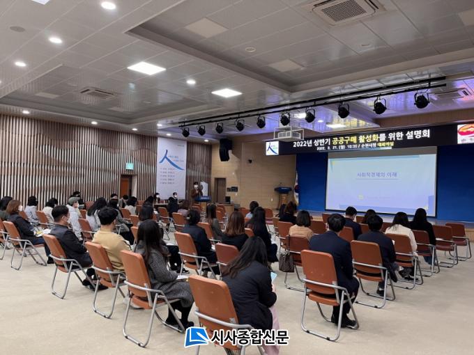 ¼øÃµ½Ã°¡ Àü¶ó³²µµ¿Í °øµ¿À¸·Î ÁÖ°üÇÑ À̹ø ¼³¸íȸ´Â °ø°ø±¸¸Å ´ã´ç °ø¹«¿ø 50¿© ¸íÀÌ Âü¼®ÇÑ °¡¿îµ¥, »çȸÀû°æÁ¦±â¾÷ Á¦Ç° Ȱ¼ºÈ¸¦ À§ÇÑ ±³À°ÀÌ ÁøÇàµÆ´Ù.