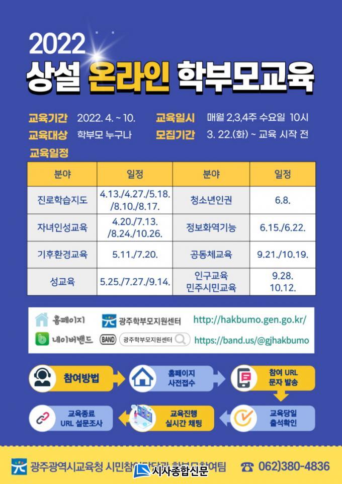 ÇÑÆí, ±³À°Âü¿©´Â ±¤ÁÖÇкθðÁö¿ø¼¾ÅÍ ´©¸®Áý(http://hakbumo.gen.go.kr)¿¡¼ »çÀü ½Åû °¡´ÉÇϸç, ÀÚ¼¼ÇÑ ³»¿ëÀº ±¤Áֽñ³À°Ã» ½Ã¹ÎÂü¿©´ã´ç°ü ÇкθðÂü¿©ÆÀ(¢Ï380-4836~8)À¸·Î ¹®ÀÇÇÏ¸é µÈ´Ù.