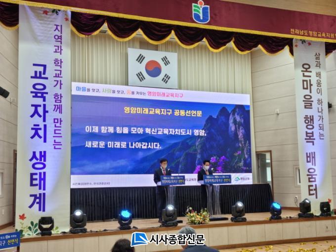 ƯÈ÷ ÃÖ±¤Ç¥ ±³À°Àå°ú Àüµ¿Æò ¿µ¾Ï±º¼ö°¡ ³ª¶õÈ÷ ¿¬´Ü¿¡¼ ³¶µ¶À» ½ÃÀÛÇÑ ¡®¿µ¾Ï¹Ì·¡±³À°Áö±¸ ¼±¾ð¹®¡¯À» Çà»ç¿¡ Âü¼®ÇÑ Çлý, Çкθð, ±³Á÷¿ø, ¸¶À»°øµ¿Ã¼°¡ À̾î¹Þ¾Æ ¼·ÎÀÇ ´ÙÁü°ú °áÀǸ¦ ¼±¾ðÇÏ°í ¿ÜħÀ¸·Î½á ¡º¸¶À»À» ǰ°í, »ç¶÷À» ÀÕ°í, Áö¿ªÀÇ ¹Ì·¡¸¦ ä¿ì´Â ÇູÇÑ ±³À°ÀÚÄ¡ »ýÅÂ°è ¿µ¾Ï¡» Àº ±³À°°øµ¿Ã¼ÀÇ Âü¿©․¿¬´ë․Çù·Â¿¡ ±â¹ÝÇϰí ÀÖÀ½À» ÀÚ¸íÇÏ°Ô º¸¿©ÁÖ¾ú´Ù.