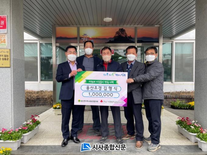[½Ã»çÁ¾ÇսŹ® = ¿À½ÂÅà ±âÀÚ] ÀåÈﱺ ¿ë»ê¸é ÇàÁ¤º¹Áö¼¾ÅÍ´Â 23ÀÏ ¿ë»êÁ¶°æ ±èÇü½Ä ´ëÇ¥°¡ Áö¿ª Àú¼Òµæ ÀÌ¿ôÀ» À§ÇØ ¼º±Ý 100¸¸¿øÀ» ±âŹÇß´Ù°í ¹àÇû´Ù.
