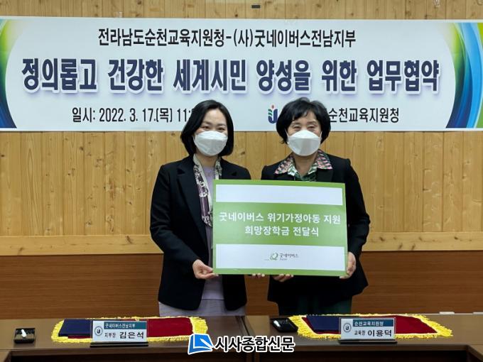 ±èÀº¼® ±Â³×À̹ö½º Àü³²ÁöºÎÀåÀº ¡°À̹ø Çù¾àÀ» ÅëÇØ ¼øÃµ±³À°Áö¿øÃ»°ú Çù·ÂÇÏ¿© Áö¿ª»çȸ ¾Æµ¿µé¿¡°Ô ´Ù¾çÇÑ ±âȸ¸¦ Á¦°øÇÒ ¼ö ÀÖ°Ô µÇ¾î ±â»Ú°Ô »ý°¢ÇÑ´Ù¸ç, ¾ÕÀ¸·Î ¼øÃµ±³À°Áö¿øÃ»°ú ÇÔ²² ¾Æµ¿µéÀÌ °Ç°ÇÏ°Ô ¼ºÀåÇÒ ¼ö ÀÖµµ·Ï Àû±ØÀûÀ¸·Î Áö¿øÇϰڴ١±°í ¹àÇû´Ù.