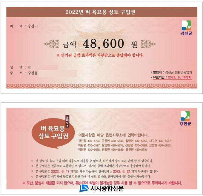 ³ó°¡´ç Áö±Þ »óÇÑ ¸éÀûÀº ¾øÀ¸¸ç °æÀÛ¸éÀû¿¡ µû¶ó Â÷µî Áö¿øÇÑ´Ù. ´Ù¸¸ °ø¹«¿ø°ú ³ó¾÷ ¿Ü Á¾ÇÕ¼Òµæ±Ý¾×ÀÌ Áö³ÇØ ±âÁØ 3,700¸¸ ¿ø ÀÌ»óÀÎ ³ó°¡´Â Á¦¿ÜµÈ´Ù. ±¸ÀÔ±ÇÀº ŸÀο¡°Ô ¾çµµÇÒ ¼ö ¾øÀ¸¸ç Áö·ù¿¡ ¹èºÎÁö¿ª ÀϷùøÈ£, ÁÖ¼Ò, ¼º¸í, »ý³â¿ùÀÏ, ÇØ´ç º¸Á¶±Ý¾×, À§¡¤º¯Á¶ ÆÇº°±â´ÉÀÌ Æ÷ÇԵŠÀÖ´Ù. ¿ÃÇØ 6¿ù 17ÀϱîÁö »ç¿ë ÇÒ ¼ö ÀÖ´Ù.