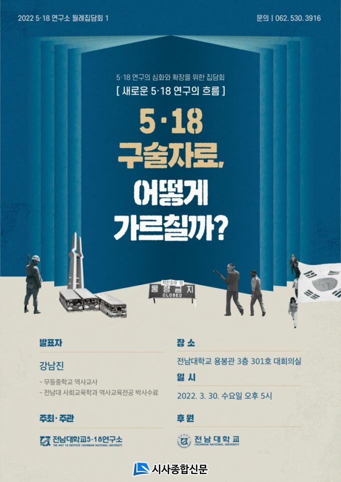 | Àü³²´ëÇб³ 5.18¿¬±¸¼Ò, 2022³â ù ¹øÂ° Áý´ãȸ °³ÃÖ ¡®5.18 ±¸¼úÀÚ·á ¾î¶»°Ô °¡¸£Ä¥±î¡¯ |