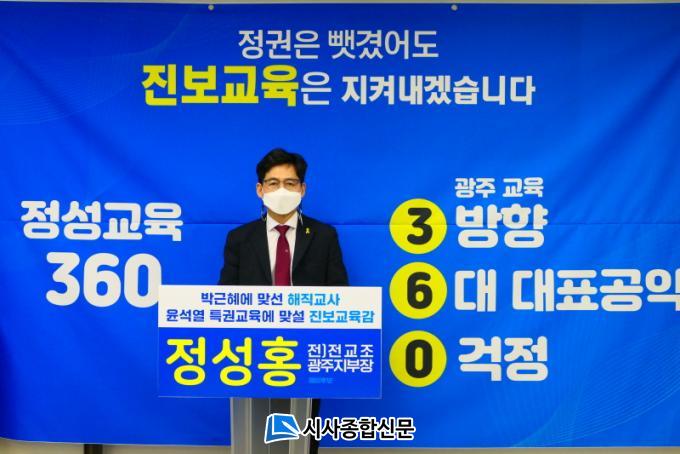 Á¤¼ºÈ« ¿¹ºñÈ帴 28ÀÏ ¿ÀÀü, ±¤ÁÖ±¤¿ª½Ã±³À°Ã»¿¡¼ ±âÀÚȸ°ßÀ» ¿°í ¡°À̹ø À±¼®¿ Á¤±ÇÀÇ ½Ã´ë¸¦ ¸Â¾Æ ¾ÆÀ̵éÀÇ ¹Ì·¡°¡ Ư±Ç±³À°°ú °æÀï±³À°À¸·Î ÈѼյǴ °ÍÀ» ÁöÄѺ¼ ¼ö ¾ø´Ù¡±¸ç ¾ÆÀ̵éÀÇ »îÀ» À§ÇÑ ±³À°À» ½ÇÇöÇÒ ¡®Á¤¼º±³À° 360¡¯ ´ëÇ¥ °ø¾àÀ» ¹ßÇ¥Çß´Ù.