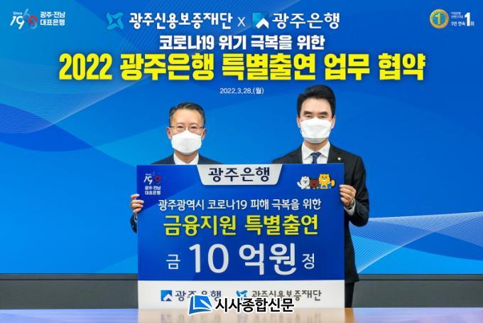 ÇÑÆí, ±¤ÁÖÀºÇàÀº 2018³âºÎÅÍ ÇöÀç±îÁö ±¤Áֽſ뺸ÁõÀç´Ü¿¡ ÃÑ 54¾ï¿ø, Àü³²½Å¿ëº¸ÁõÀç´Ü¿¡ ÃÑ 47¾ï¿øÀ» Ưº°Ã⿬ÇßÀ¸¸ç, À̹ø ¾÷¹«Çù¾à¿¡ ¾Õ¼ Àü³²½Å¿ëº¸ÁõÀç´Ü¿¡ 10¾ï¿ø, ±¤ÁÖ±¤¿ª½Ã µ¿¡¤¼¡¤ºÏ±¸Ã»¿¡ ÃÑ 1¾ï 5õ¸¸¿øÀ» º°µµ Ã⿬ÇÏ¿© ¼Ò»ó°øÀΠƯ·Êº¸Áõ´ëÃâÀ» Áö¿øÇϱâ·Î Çß´Ù. ¶ÇÇÑ ±¤ÁÖÀºÇà ÀÚü Ưº°ÀÚ±Ý Áö¿øÀ» ½Ç½ÃÇØ 2022³â 2¿ù¸» ±âÁØÀ¸·Î ±¤ÁÖÀºÇàÀÌ Äڷγª19 ÇÇÇØ Áß¼Ò±â¾÷ ¹× ¼Ò»ó°øÀο¡ ½Ç½ÃÇÑ ±ÝÀ¶Áö¿øÀº 28,216°Ç, 1Á¶2,754¾ï¿ø¿¡ À̸£·¶´Ù.