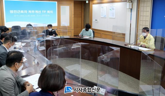 ¡®¿°Àü±Ù·ÎÀÚ Ã³¿ì°³¼± ÃßÁø TF¡¯´Â Àü³²µµ¿Í Àü³²°æÂûû, °í¿ë³ëµ¿ºÎ µîÀ» Áß½ÉÀ¸·Î ´ã´ç ºÎ¼Àå 9¸íÀ» Æ÷ÇÔ, ÇàÁ¤ºÎÁö»ç¸¦ ´ÜÀåÀ¸·Î ÇÑ 1´ÜÀå 3¹Ý ü°è·Î ±¸¼ºµÆ´Ù. 3°³ ¹ÝÀº ÃѰý¹Ý, Á¶»çÁö¿ø¹Ý, ÇöÀåÃßÁø¹ÝÀÌ´Ù.