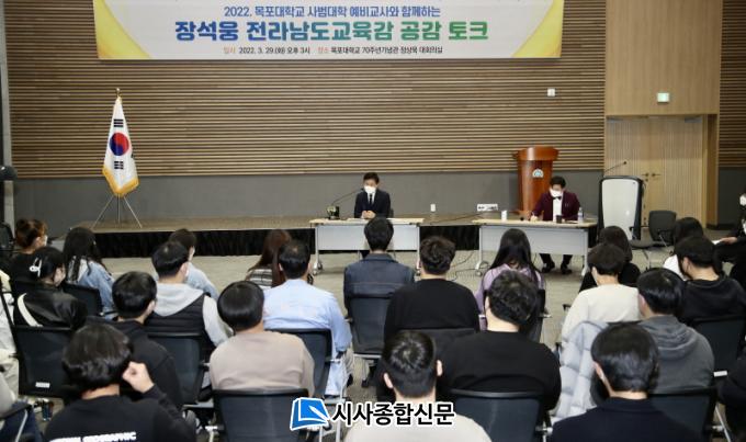 ¸ñÆ÷´ë »ç¹ü´ë¿¡ ÀçÇÐÁßÀÎ 20´ë ¿¹ºñ±³»çµéÀº Àü³²±³À°Ã»ÀÇ ±³»çÀÓ¿ë °èȹºÎÅÍ ¹Ì·¡ÀÇ ±³»ç°¡ °®Ãß¾î¾ß ÇÒ ¿ª·® µî¿¡ ´ëÇØ ´Ù¾çÇÑ Áú¹®À» Çß°í, Àå ±³À°°¨Àº ÇöÀå ±³»ç·Î¼ »ì¾Æ¿Â °æÇè°ú ±³À°Ã¶ÇÐ, Àü³²±³À° ¹æÇâÀ» ´ã´ãÇÏ°Ô ´äº¯Çß´Ù. ¶ÇÇÑ, Àü³²Áö¿ª ÀÛÀºÇб³ÀÇ ÀåÁ¡ ¹× ´ÜÁ¡, ±³»ç Ãæ¿ø µî¿¡ ´ëÇØ¼µµ ÀÚÀ¯·Ó°Ô ÀǰßÀ» ³ª´³´Ù.