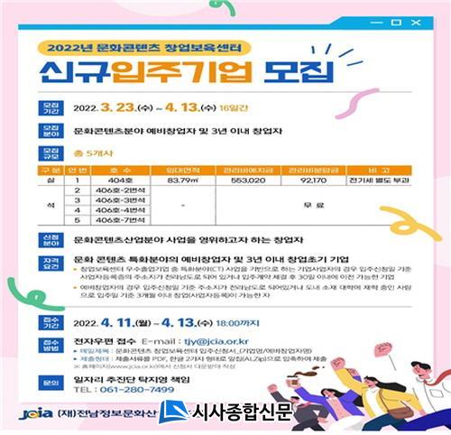 [½Ã»çÁ¾ÇսŹ® = ¿À½ÂÅà ±âÀÚ] (Àç)Àü³²Á¤º¸¹®È»ê¾÷ÁøÈï¿ø(¿øÀå ÀÌÀοë, ÀÌÇÏ ¡®ÁøÈï¿ø¡¯)Àº ´ÙÀ½´Þ 13ÀϱîÁö ¹®ÈÄÜÅÙÃ÷ â¾÷º¸À°¼¾ÅÍ(¼¾ÅÍÀå ±ÇÁؾÆ) ½Å±ÔÀÔÁÖ±â¾÷À» ¸ðÁýÇÑ´Ù°í ¹àÇû´Ù.