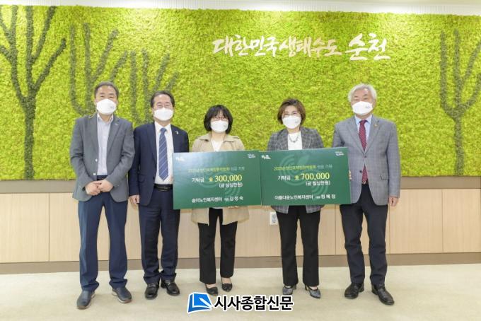 ¾Æ¸§´Ù¿î ³ëÀκ¹Áö¼¾ÅÍ(´ëÇ¥ Á¤ÇýÁ¤)¿Í ¼ÛÀÌ ³ëÀκ¹Áö¼¾ÅÍ(´ëÇ¥ ±è¼º¼÷)´Â 31ÀÏ °¢°¢ 70¸¸¿ø°ú 30¸¸¿øÀÇ ±âºÎ±ÝÀ» ¼øÃµ¸¸±¹Á¦Á¤¿ø¹Ú¶÷ȸ Á¶Á÷À§¿øÈ¸¿¡ Àü´ÞÇß´Ù.