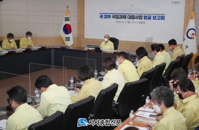 ½Ã´Â 4ÀÏ ½Ãû»óȲ½Ç¿¡¼ Á¤Çöº¹ ±¤¾ç½ÃÀå ÁÖÀç·Î ½Ç¡¤±¹Àå°ú ºÎ¼ÀåÀÌ Âü¿©ÇÑ °¡¿îµ¥ ¡®»õ Á¤ºÎ ±¹Á¤°úÁ¦ ´ëÀÀ»ç¾÷ ¹ß±¼ º¸°íȸ¡¯¸¦ °¡Á³´Ù.