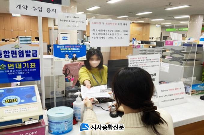 ¸ñ¿ä ¾ß°£ ⱸ¿¡¼´Â ÅëÇչοø Á¦Áõ¸í ¹ß±Þ, ¿©±Ç, °¡Á·°ü°èµî·Ï °ü·Ã ¹Î¿ø ¼ºñ½º¸¦ Á¦°øÇÑ´Ù. ¹Î¿ø ¼ö¿ä°¡ ¸¹Àº ¿©±Ç Á¢¼ö¼ö·ÉÀº ¸ñ¿äÀÏ ¿ÀÈÄ 8½Ã±îÁö °¡´ÉÇÏ´Ù.
