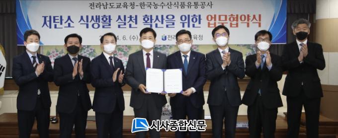 Àå¼®¿õ Àü³²±³À°°¨°ú ±èÃáÁø Çѱ¹³ó¼ö»ê½ÄǰÀ¯Åë°ø»ç »çÀåÀÌ ¼¸íÇÑ ÀÌ Çù¾à¿¡¼ µÎ ±â°üÀº ±âÈÄÀ§±â¿¡ ´ëÀÀÇÏ´Â Àúź¼Ò ½Ä»ýȰ ¹× ź¼ÒÁ߸³ ½Çõ¿¡ »óÈ£ Çù·ÂÇϱâ·Î ÇÕÀÇÇß´Ù.